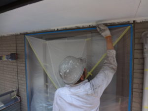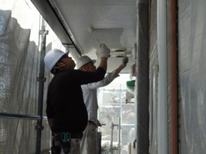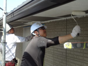 1回目1階軒天塗装作業風景(^_-)-☆