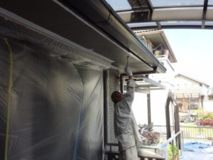 本日の作業は軒天塗装作業&GAINA(ガイナ)中塗り作業になります。。。(^_-)-☆