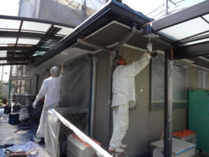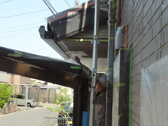 2回目1階軒天塗装作業風景(#^^#)
