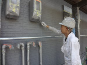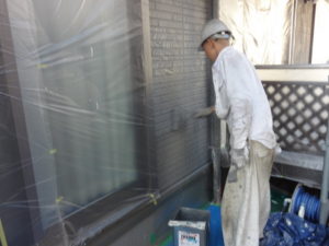 1階北側面GAINA(ガイナ)上塗り作業風景(#^^#)