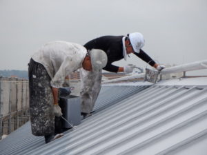 下塗り(錆止め)作業風景。。。(#^^#)刷毛とローラーで丁寧に塗っていきます。。。