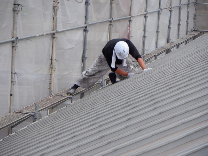 屋根ガルバリウム鋼板ケレン作業(#^^#)