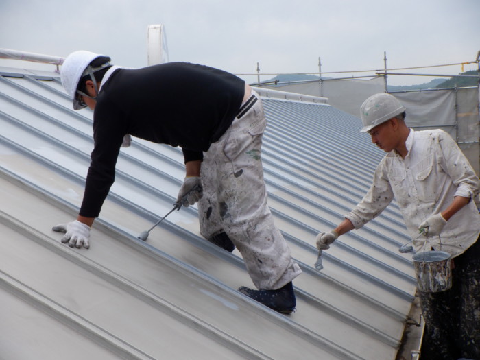 (塗装)屋根ケレン作業&下塗り(錆止め)中塗り作業になります。。。宜しくお願い致します。。。