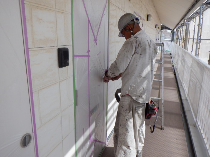 暑い中丁寧な養生作業で頑張ってくれてます。。。(#^^#)