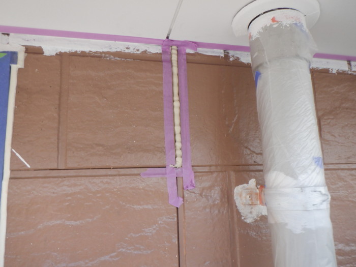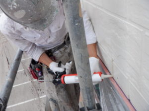 本日の作業は各所クラック補修作業&GAINA(ガイナ)屋根上塗り作業&GAINA(ガイナ)外壁中塗り作業に