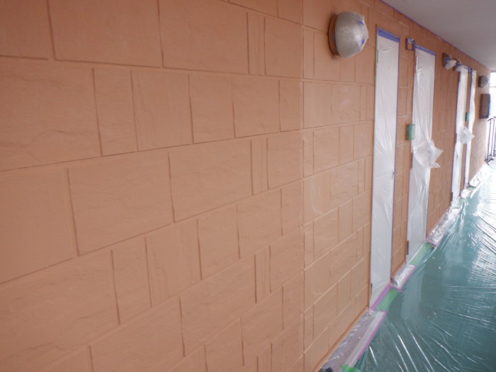 GAINA(ガイナ)西面2F共用廊下外壁上塗り作業風景(^_-)-☆