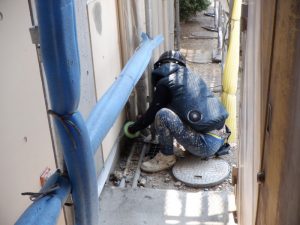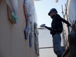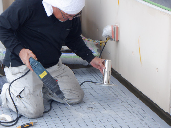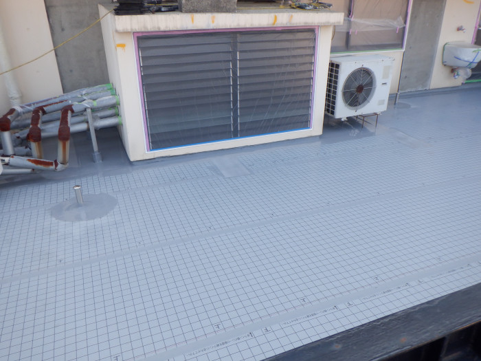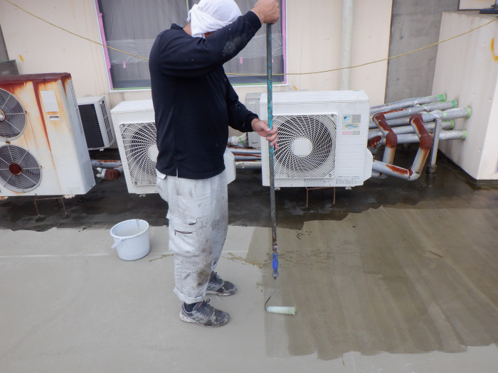 本日の防水部隊は2F/3Fとプライマーを塗ってからシートを貼っていきます。。。