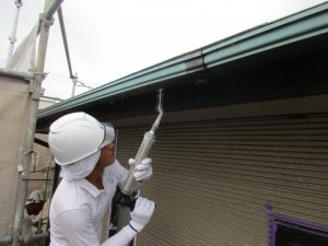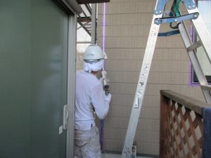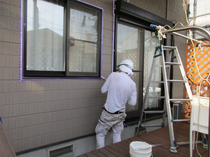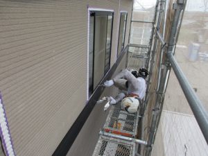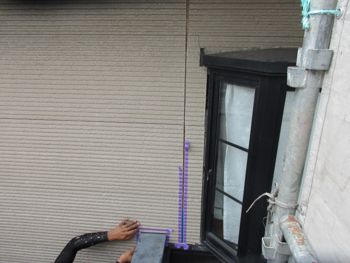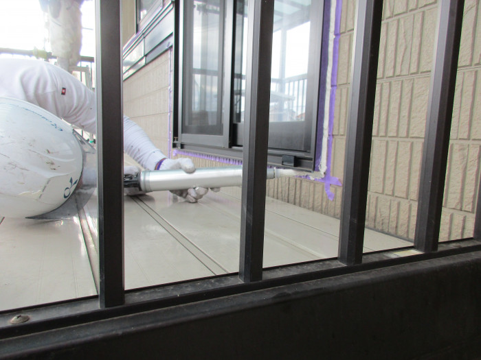 コーキング撤去マスキングテープ貼付けプライマー作業コーキング作業均し作業マスキングテープ撤去完成に