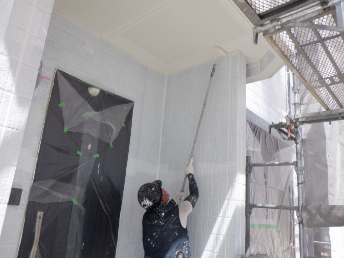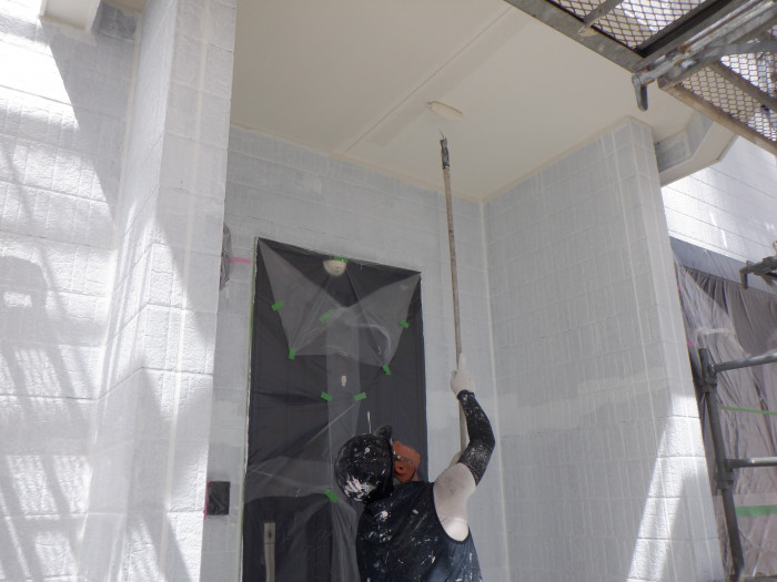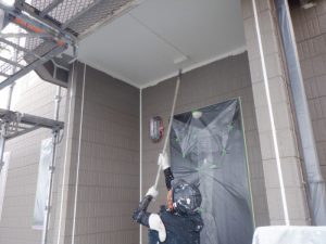 1回目玄関軒天塗装作業。。。