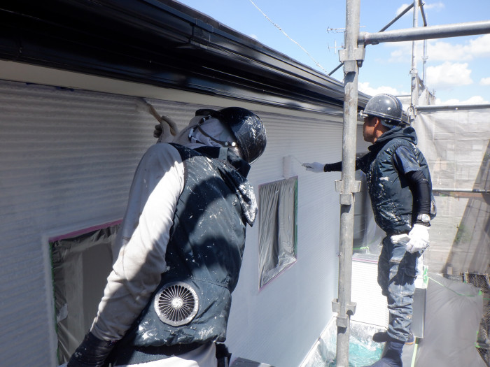 本日の作業は2階部はGAINA(ガイナ)中塗り&上塗り!