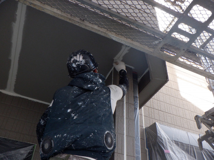 2回目軒天塗装作業(*^▽^*)綺麗な仕上がりです。。。