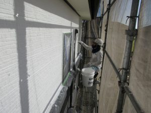 本日の作業は外壁GAINA(ガイナ)N-50上塗り作業&2回目外壁GAINA(ガイナ)N-95上塗り作業(#^^#)