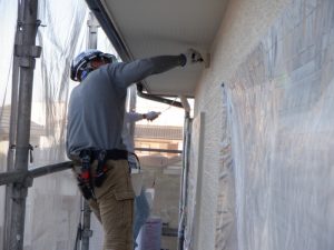 本日の作業は下塗りシーラー作業&軒天塗装作業&2F中塗りGAINA(ガイナ)作業になります。。。