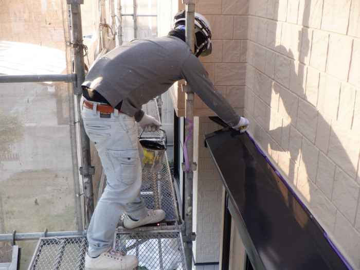 1回目水切り塗装作業&雨樋塗装作業になります(^_-)-☆