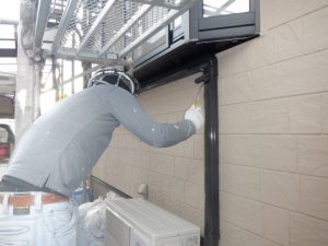 2回目付帯部塗装作業(竪樋/幕板/小庇/スリムダクト/雨戸)(^_-)-☆