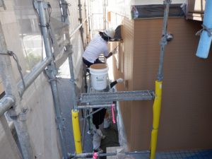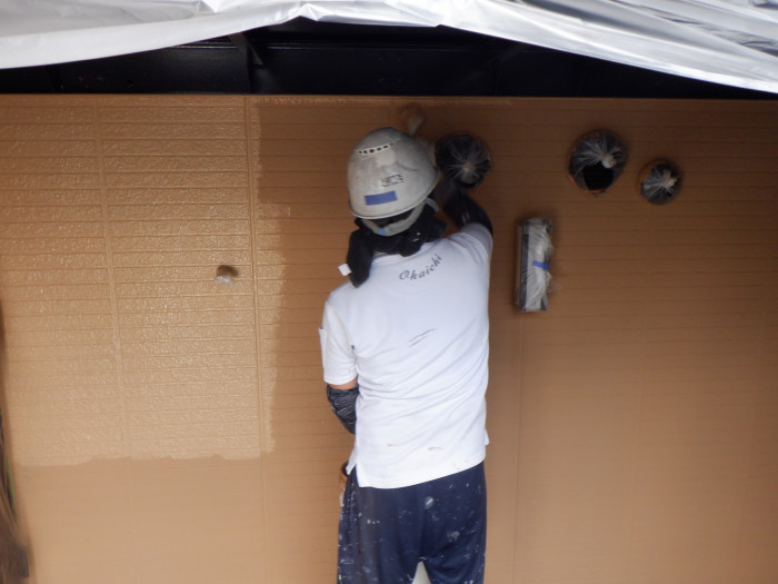 西側面上側GAINA(ガイナ)上塗り作業風景(^_-)-☆