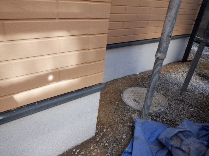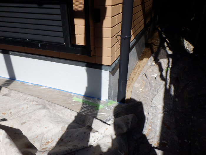 1回目2回目付帯部(竪樋/水切り/スリムダクト)塗装作業(*^^)v