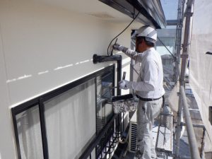 1回目、2回目付帯部水切り塗装作業(*^▽^*)