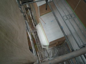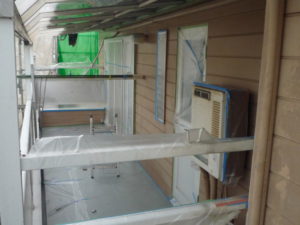 屋根のタッチアップ中に養生ばっちり仕上がってました。