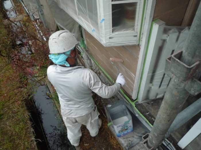 引き続き、私は屋根の目飛びをタッチアップいたします。
