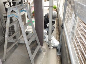 鉄部(手摺り、駐輪場)ケレン作業風景(#^^#)