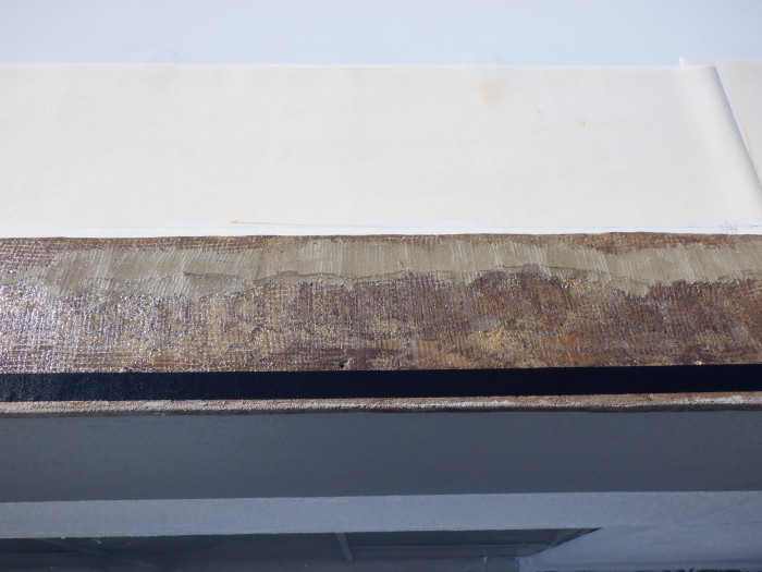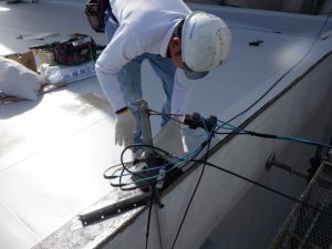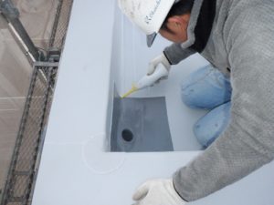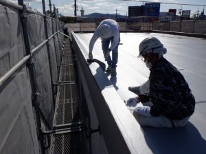 防水部は天端ルーフィングシート張り付け、アルミ金物取付作業になります。。。