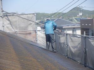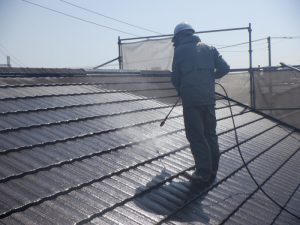 まずは、屋根からの洗浄になります。