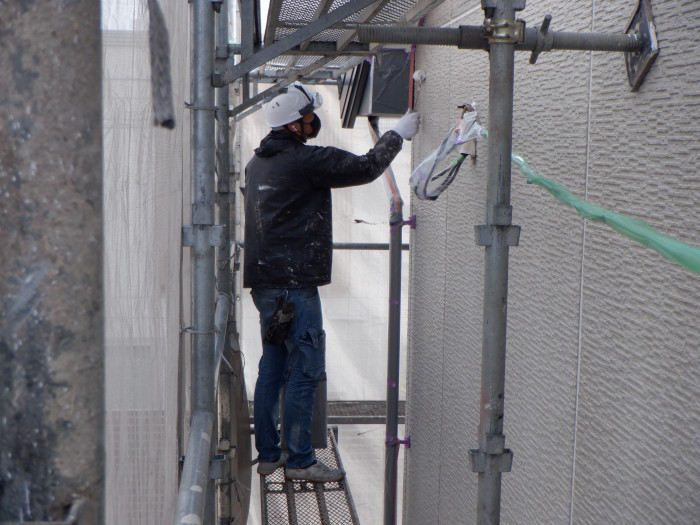 外壁上側GAINA(ガイナ)中塗り作業風景(#^^#)