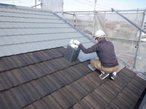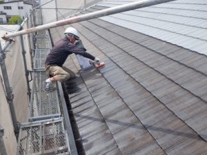 屋根GAINA(ガイナ)中塗り作業風景(*^^)v