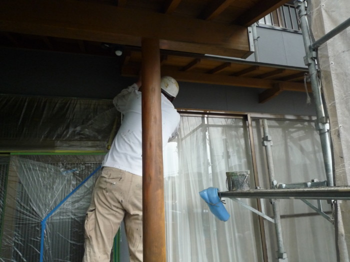 小庇塗装丁寧に塗装してまーす♪