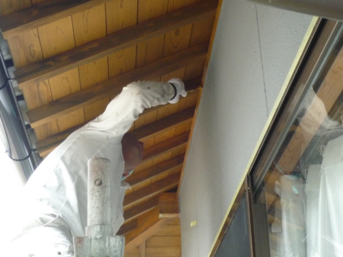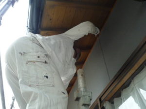 軒天木部(キシラデコール)養生後の塗装、もちろん2回塗って行きます!