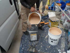 通常の塗料よりしっかり撹拌してから小分けにします(#^^#)今日は3人での作業です!