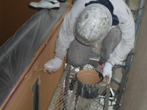 上塗りはこれより少し濃くなります!塗り残し、目飛び防止の為、色を変えて塗っていきます!