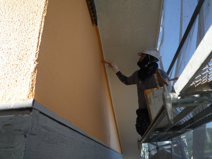 付帯部を刷毛で丁寧に塗っていきます🎶