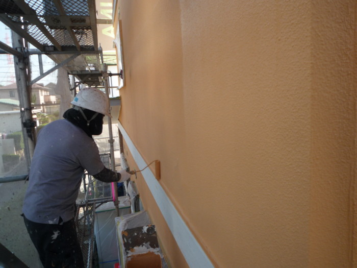 2F北面GAINA(ガイナ)上塗り風景①サンドベージュとでも言いましょうか。