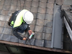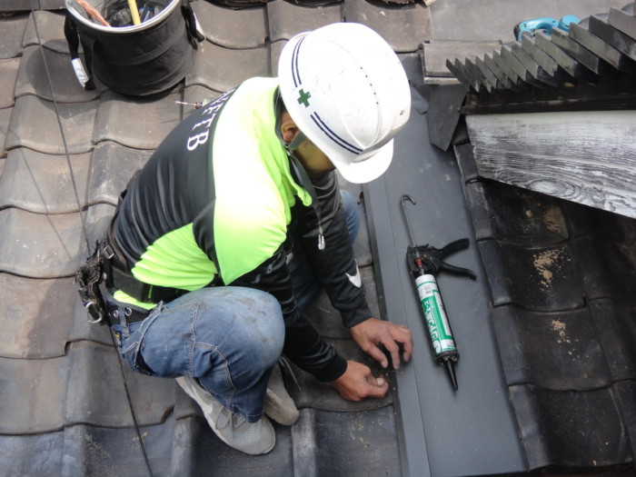 谷樋、壁際の水切り取付け作業風景(^_-)-☆