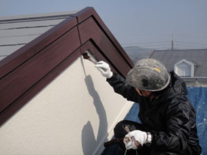 付帯部(破風板、軒樋)茶を入れていきます締まってきますね~引き締まります♪