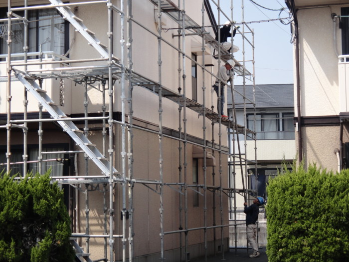 足場完成~~~予定より、かなり早く出来ました(^_-)-☆