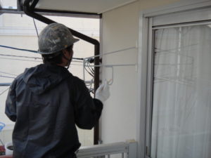 付帯部(フード、配電盤、物干し金具)溶剤シリコン塗装(^^♪