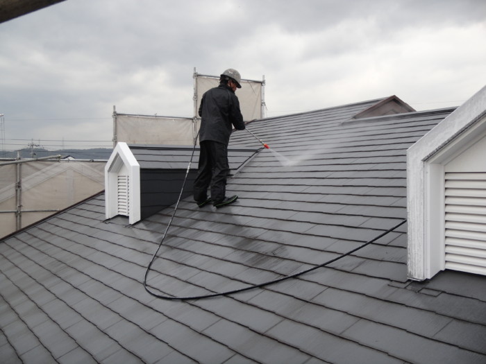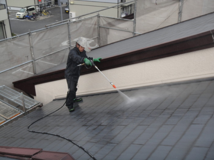 プレジデンスB棟、屋根高圧洗浄(^^♪気持ちよさそうに見えます♬