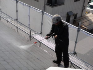 本日は高圧洗浄&屋根タスペーサー作業になります(^^♪