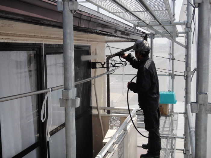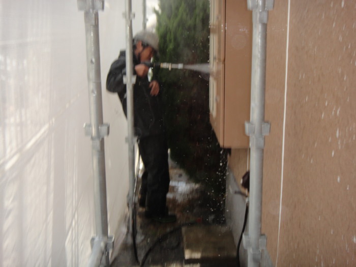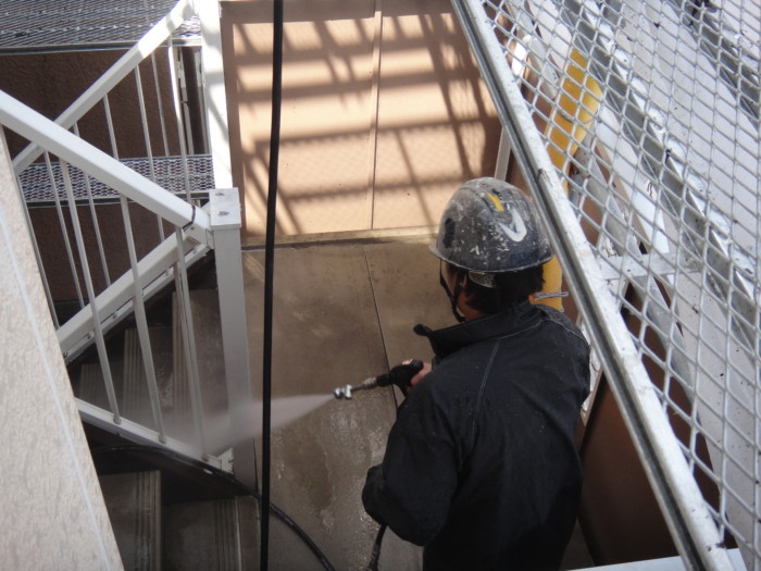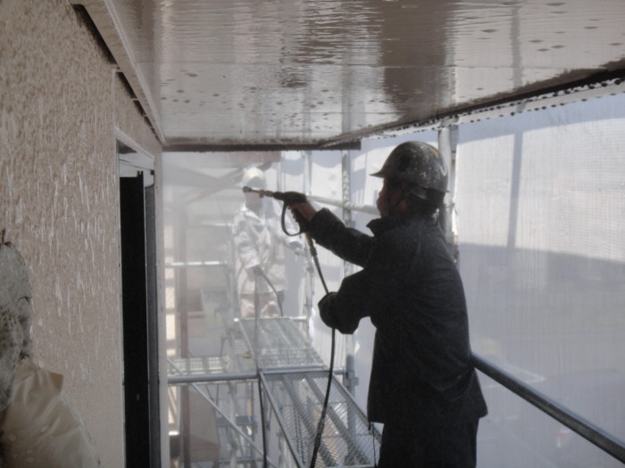 A棟は前塗装が剥離して気泡になってましたので高圧洗浄の際、