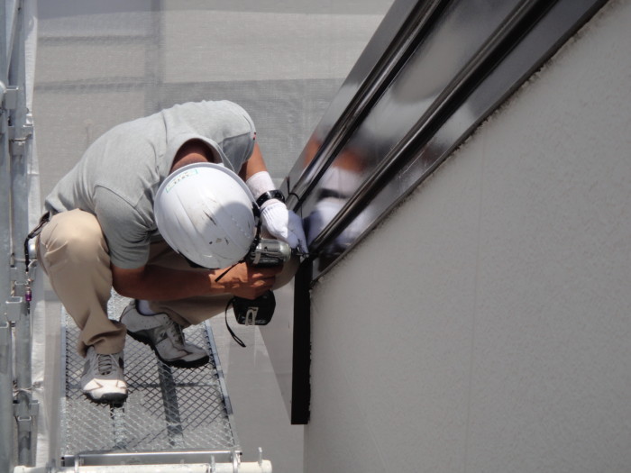 経年劣化でビスが抜けブランブランの破風を新しく長いビスで補修中(*^^)v