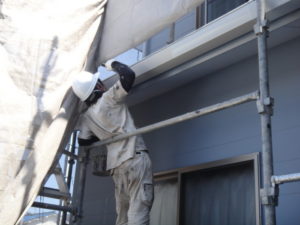 2F雨樋2回目塗装作業風景!えっ!2回目はヘルメット被るんか~~~~い(^^♪