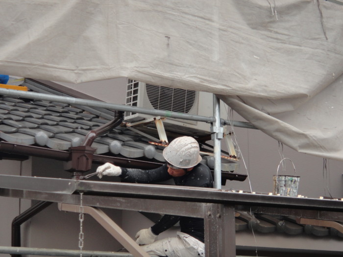 破風の所のコウモリ除け板金塗装作業♬