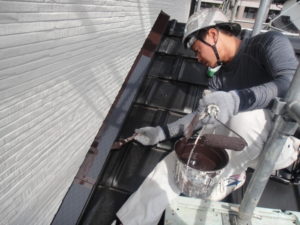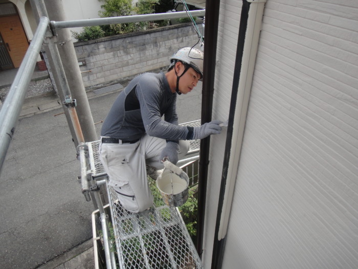 基礎&基礎上水切り2回目塗装作業風景になります(^_-)-☆