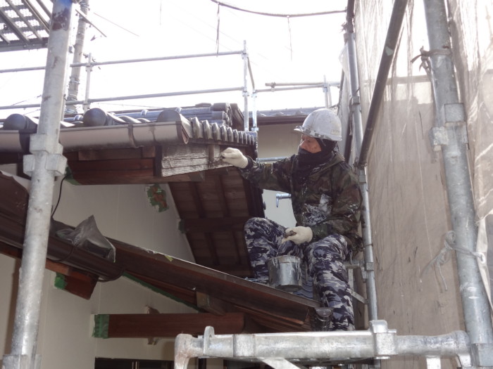 木部(破風板/母屋)各所ガードラック塗装作業風景(^_-)-☆