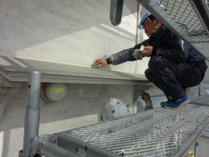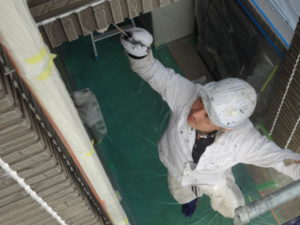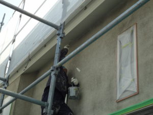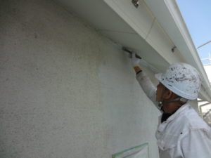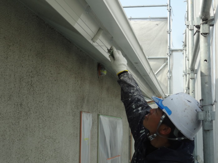 1回目軒天、破風板、鼻隠し、塗装作業風景!!!