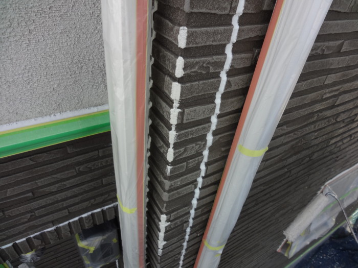 サイディング補修作業ビス止めした跡にコーキング作業!