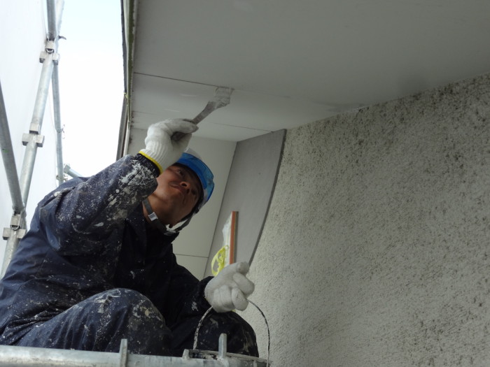 下地調整(軒天クラック小庇クラック)パテ補修作業。。。(#^^#)
